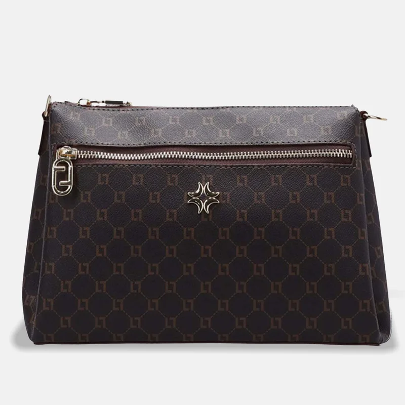 Design: Formato estruturado com monograma LL e ferragens douradas