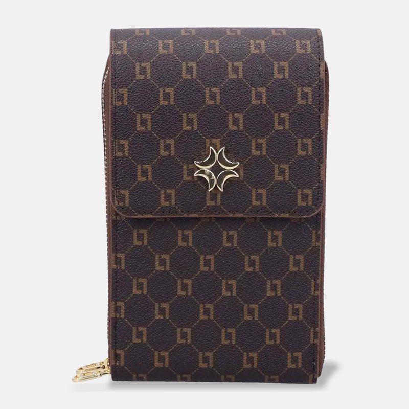 A peça apresenta estampa monograma aplicada de forma uniforme, costuras precisas e estrutura bem definida que valoriza o formato compacto. As ferragens douradas, o puxador com detalhe da marca e a alça tiracolo fina criam um visual moderno, discreto e sofisticado, perfeito para complementar produções urbanas com elegância.