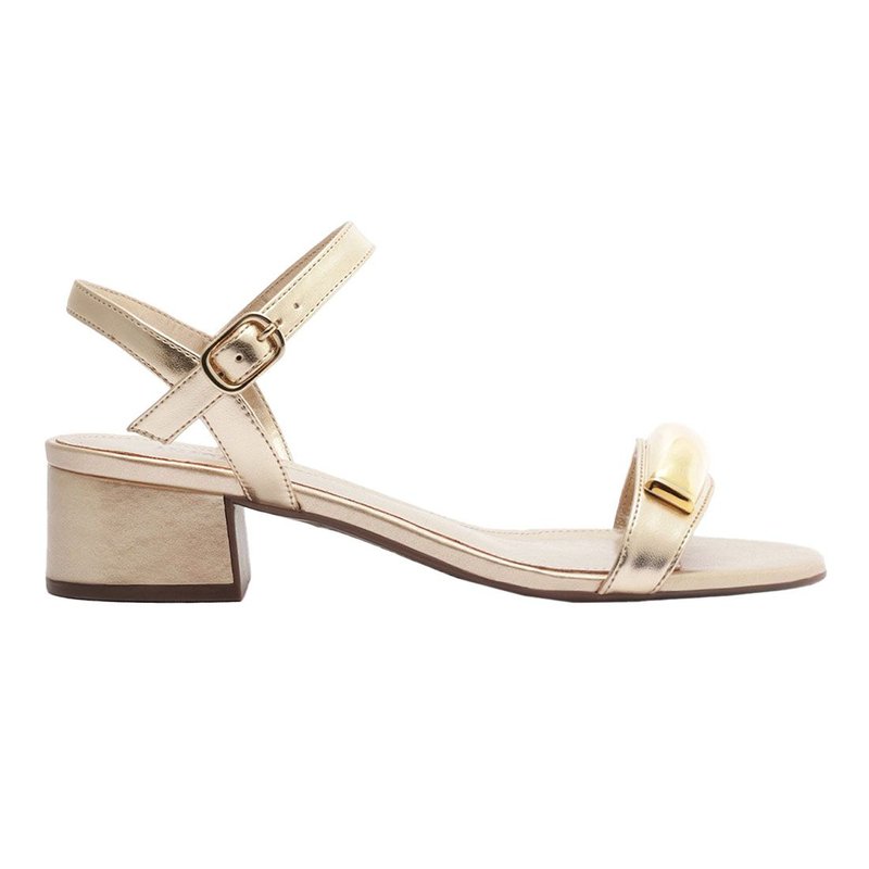 Sandália Marie de salto bloco com detalhe em metais, possui salto em bloco médio e biqueira quadrada. Traz cabedal com tirinha fina sobre os dedos e detalhe delicado com adorno retangular - imponente e metálico - aplicado na gáspea. Com tira traseira que contorna o calcanhar, possui tira fina no tornozelo, com fecho lateral por fivela metálica. Apresenta palmilha de mesmo tom da sandália, com assinatura Anacapri.