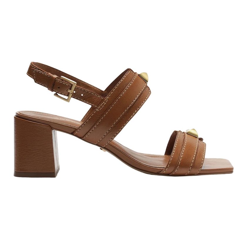 Este modelo oferece presença e elegância. O salto bloco garante estabilidade, enquanto as tachas nas tiras acrescentam um toque fashion sem abrir mão do conforto.