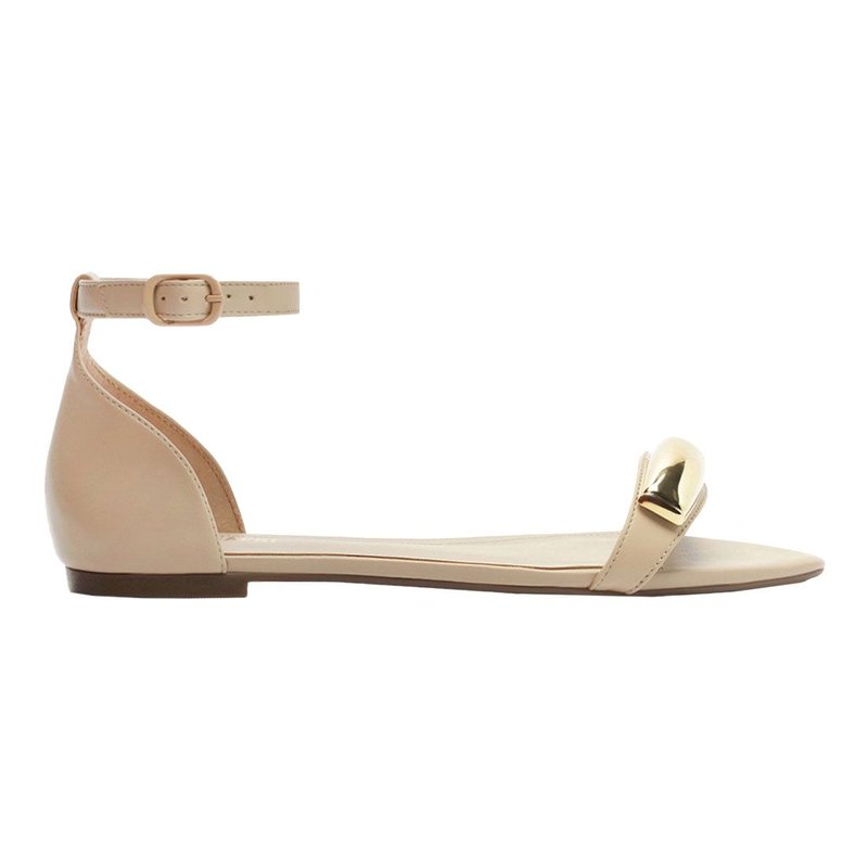 Rasteira Marie com detalhe em metais, possui solado emborrachado, com leve saltinho traseiro. Apresenta biqueira com shape triangular em folha, com tirinha fina sobre os dedos e detalhe delicado com adorno retangular - imponente e metálico - aplicado na gáspea. Fechada no calcanhar, possui tira fina que contorna o tornozelo, com fecho lateral por fivela metálica. Apresenta palmilha de mesmo tom da rasteirinha, com assinatura Anacapri. A rasteira deixa os dedos e laterais à mostra.