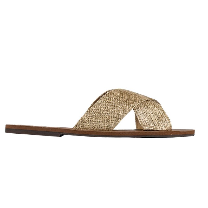 Rasteira com tiras largas cruzadas e aplicação de brilho que eleva produções casuais sem perder a leveza. O formato flat e a palmilha macia garantem conforto para o dia a dia, enquanto o solado estável oferece segurança ao caminhar. Versátil, transita do jeans ao vestido e vai bem do passeio à noite casual.
