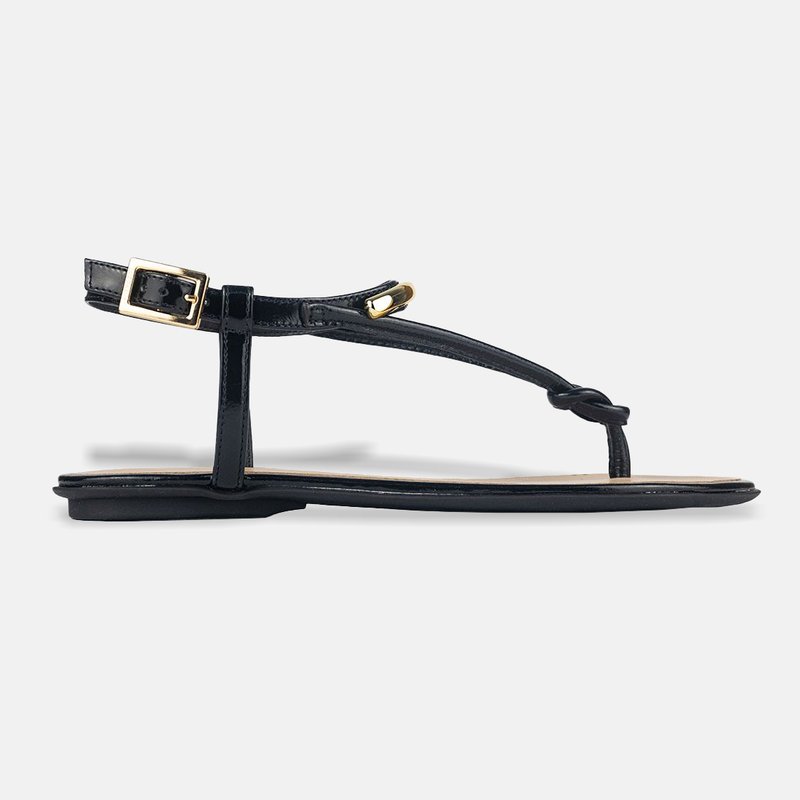 Sandália Rasteira Luz da Lua Tira Nó Fina Preto