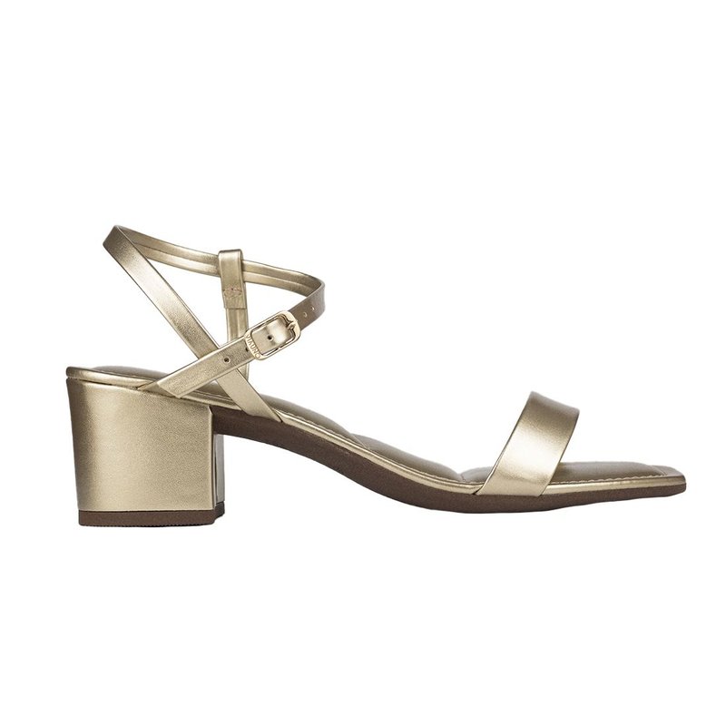 Sandália de salto bloco baixo com tiras finas e fecho lateral por fivela, garantindo ajuste prático e calce seguro. O bico levemente quadrado e o brilho sutil entregam elegância sem excessos, enquanto a palmilha macia e a base estável favorecem o conforto ao longo do uso. Uma peça coringa que transita do trabalho a eventos, combinando com vestidos, jeans e alfaiataria.