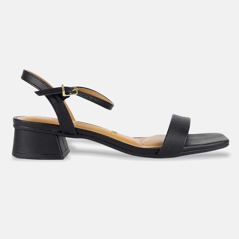 A Sandália Vizzano Salto Bloco Baixo Tira Fina Pelica Preto - 6454.111.7286 combina bico levemente quadrado, tira frontal lisa, tiras finas cruzando o peito do pé e envolvendo o tornozelo com fivela lateral, além de salto bloco baixo, entregando um modelo leve, estável e versátil para compor produções casuais e looks arrumados com conforto ao longo do dia.