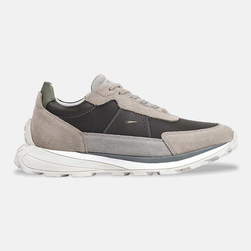 O modelo apresenta cabedal estruturado com sobreposição de painéis, costuras aparentes que desenham as linhas do sneaker e etiqueta aplicada na lingueta, reforçando a identidade urbana. A construção em camadas cria profundidade visual, enquanto o solado tratorado de perfil alto, com relevos marcados, entrega um estilo robusto e contemporâneo que se destaca em produções casuais com pegada streetwear.